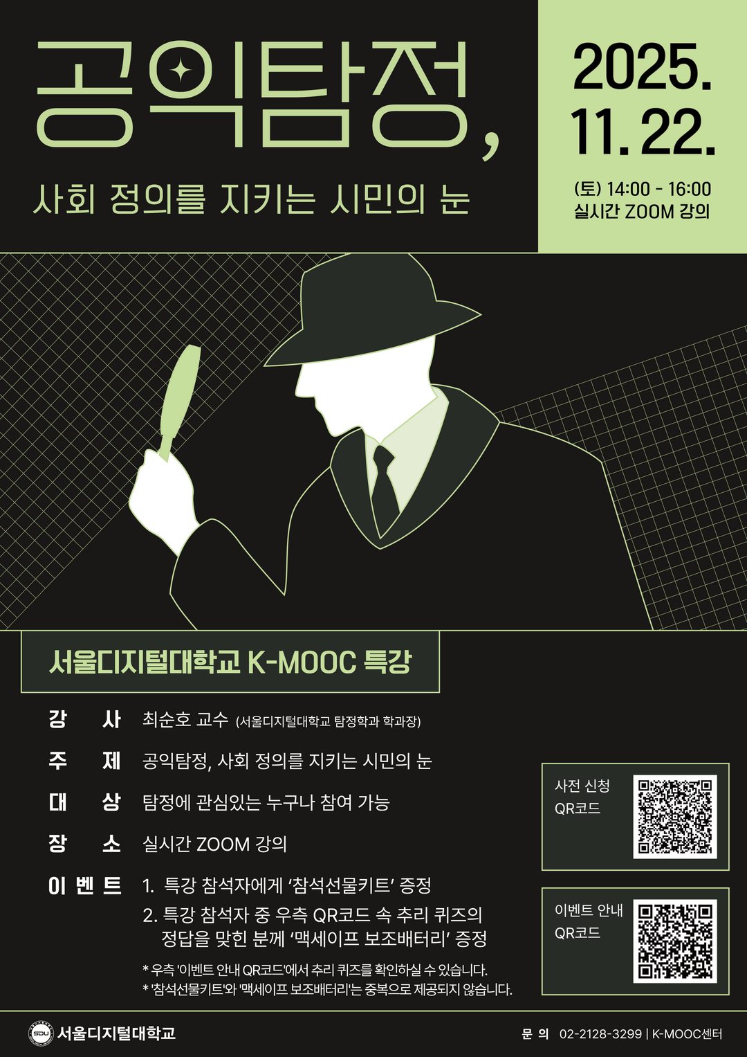 | ▲서울디지털대 탐정학과 최순호 교수가 오는 11월 22일 K-MOOC 온라인 특강을 개최한다.[제공=서울디지털대] |