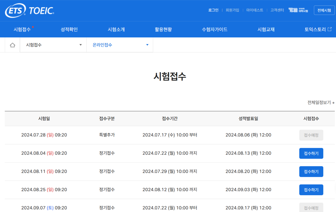 올해 3회 서울시 7급 시험에 지원 가능한 토익 시험은 7월 28일(일)부터 10월 13일(일) 시험까지 총 7회차가 남아있다.