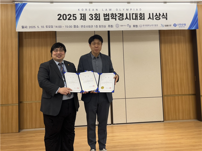 [피앤피뉴스=마성배 기자] 법률사무소 선율이 주최하고 한국법학능력시험원과 법률신문, 신한은행 법조타운지점이 후원한 ‘2025년 제3회 법학경시대회’ 시상식이 지난 5월 10일 서울 변호사회관에서 열렸다. 특히, 현직 경찰관이 수석을 차지하며 법조계와 학계의 눈길을 끌었다.