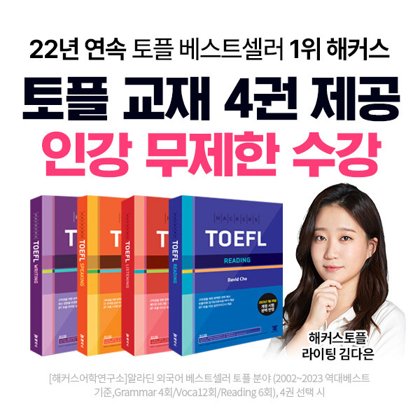 이와 함께 토플 지문의 자연과학, 사회과학, 인문학 배경 지식이 수록되고, 최신 빈출 주제 기반으로 토플 지문 빈출어휘가 수록된 ‘해커스 배경지식 100선(*PDF)’도 무료로 제공한다.
