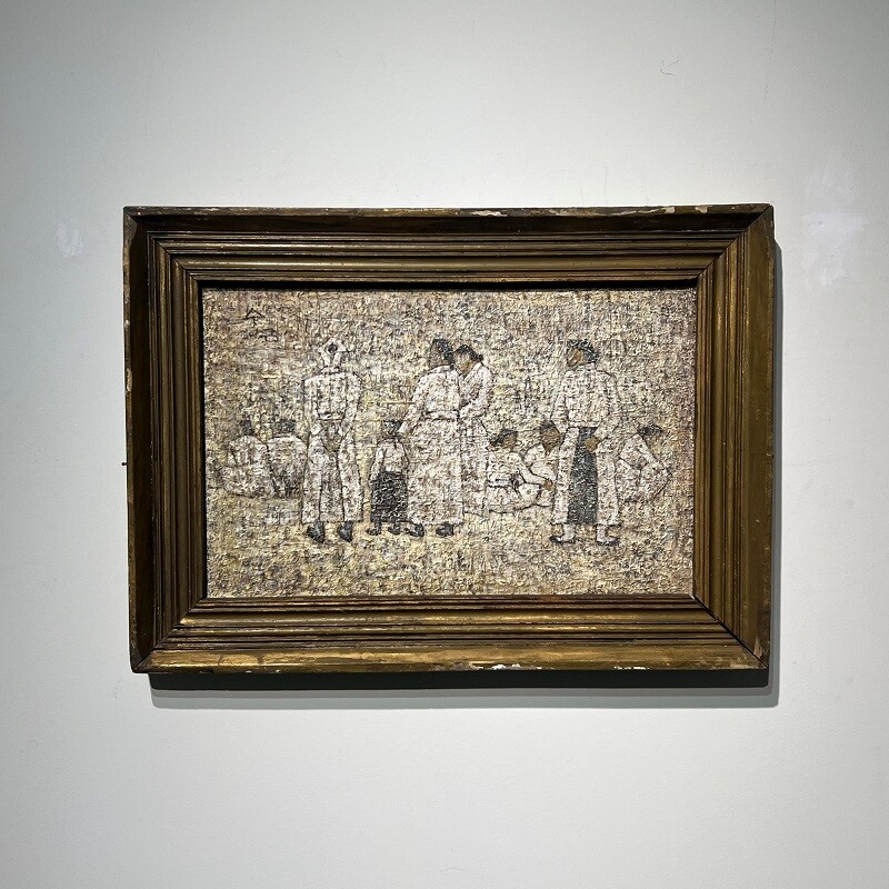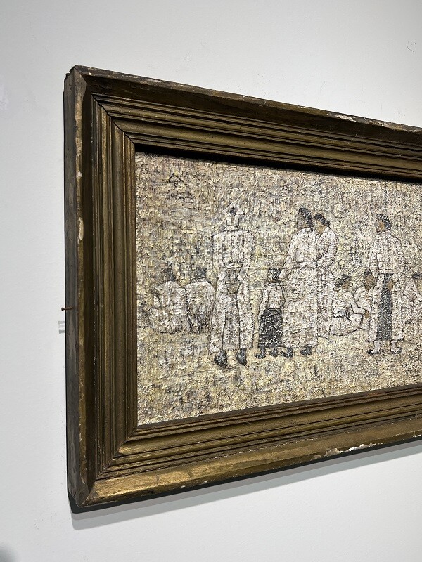 짙은 흙빛 화면 위에 하얀 옷을 입은 인물들이 모여 있는 장면은 극적인 서사 없이도 관람객에게 시대의 공기와 삶의 정서를 함축적으로 전한다.