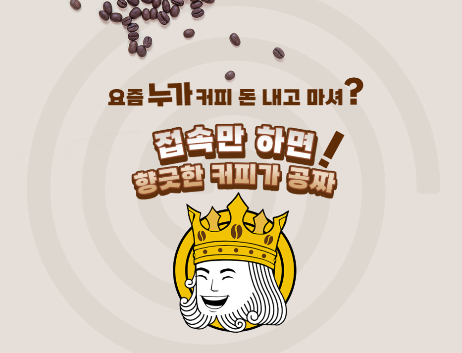 커피킹은 출석체크, 친구 추천, 광고 시청 등을 통해 ‘커피콩’을 적립하고, 이를 전국 프랜차이즈 카페에서 사용할 수 있도록 한 플랫폼이다. 출시를 기념해 10일 연속 출석 시 무료 커피를 제공하는 행사가 진행되기도 했다.