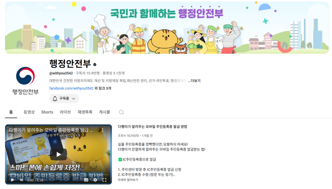 ▲행정안전부 공식 유튜브 채널 캡쳐