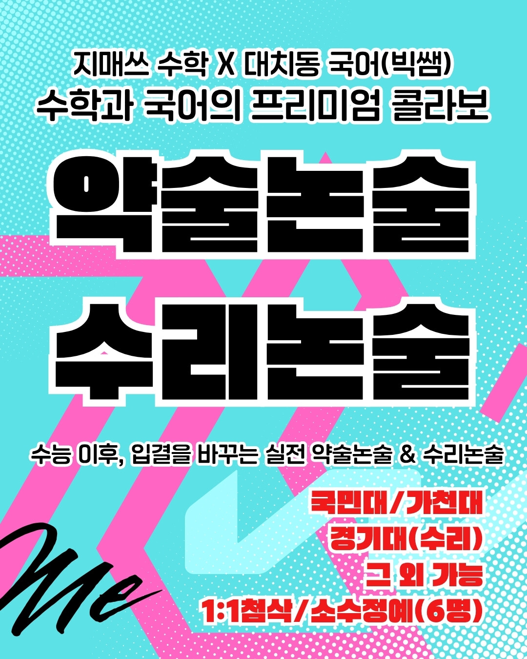 지매쓰 관계자는 “이번 약술논술 및 수리논술 프로그램은 단순한 시험 대비를 넘어, 학생 개개인의 사고력과 표현력을 입시 경쟁력으로 전환하는 과정”이라며 “너의 마지막 역전 골든타임, 지매쓰 논술과 함께하라”는 메시지를 전했다.