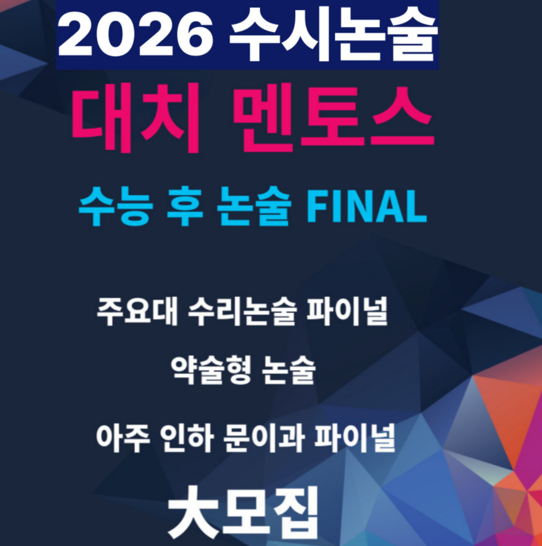 강재상, 조윤성 선생님이 토요일, 일요일 정규반 수업으로 수리논술을 대비 중이다. 2026년 수리논술, 약술형 논술반도 예약 중이다. 멘토스학원은 수업과 첨삭을 선생님이 직접하고 한반 정원을 15명 이내로 제한해서 수업을 진행한다. 그리고 수능 후 파이널 논술도 예약을 시작했다.