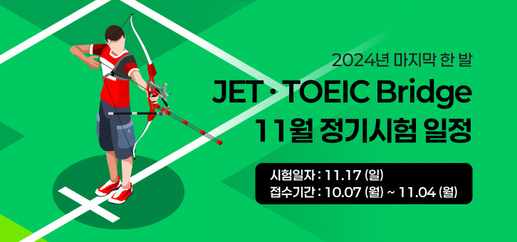올해 마지막 회차인 JET·TOEIC Bridge 시험은 11월 17일 오전 9시 50분에 진행되며, 성적 발표는 JET는 11월 26일, TOEIC Bridge는 12월 6일에 순차적으로 이루어질 예정이다.