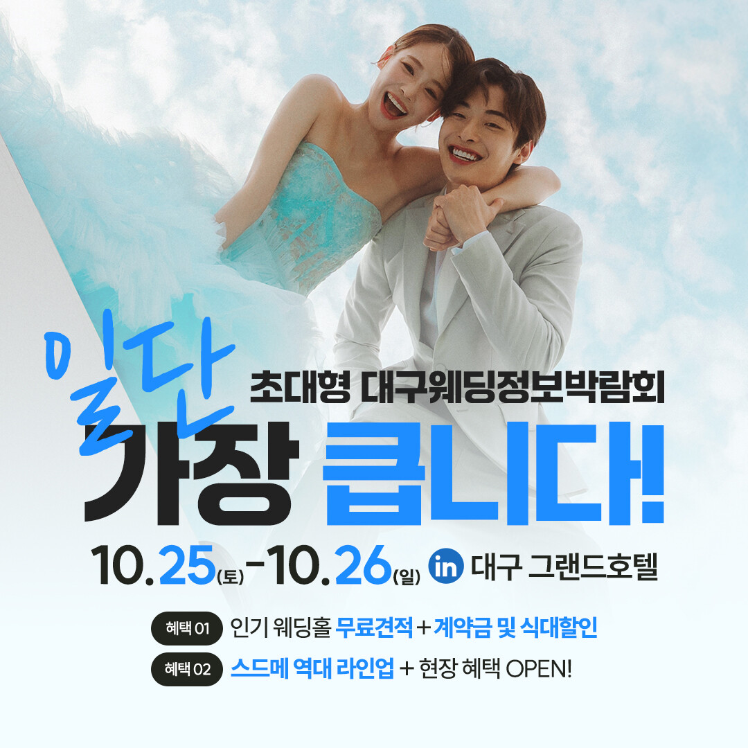 가을 웨딩 시즌에 맞춰 대구웨딩정보센터가 10월 25~26일 대구 그랜드호텔 B1에서 ‘대구웨딩정보박람회’를 연다. 결정해야 할 요소가 많은 결혼 준비를 짧은 동선으로 압축했다.