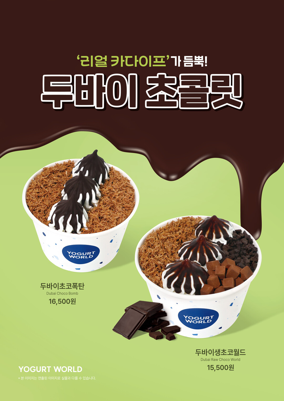 요거트월드는 지난달 23일, SNS에서 인기를 끌었던 '요거트 아이스크림'과 '두바이 초콜릿'을 조합해 바삭한 카다이프를 첨가한 요거트 아이스크림 신메뉴 2종을 선보였다.