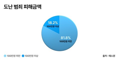 실제 피해가 발생한 도난범죄를 분석한 결과, 피해 금액 100만원 미만의 '소액 절도'가 전체의 81.8%에 달했다.