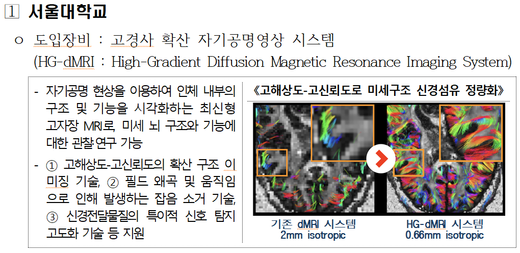 <서울대학교 선정과제별 대표 도입장비 예시 자료>