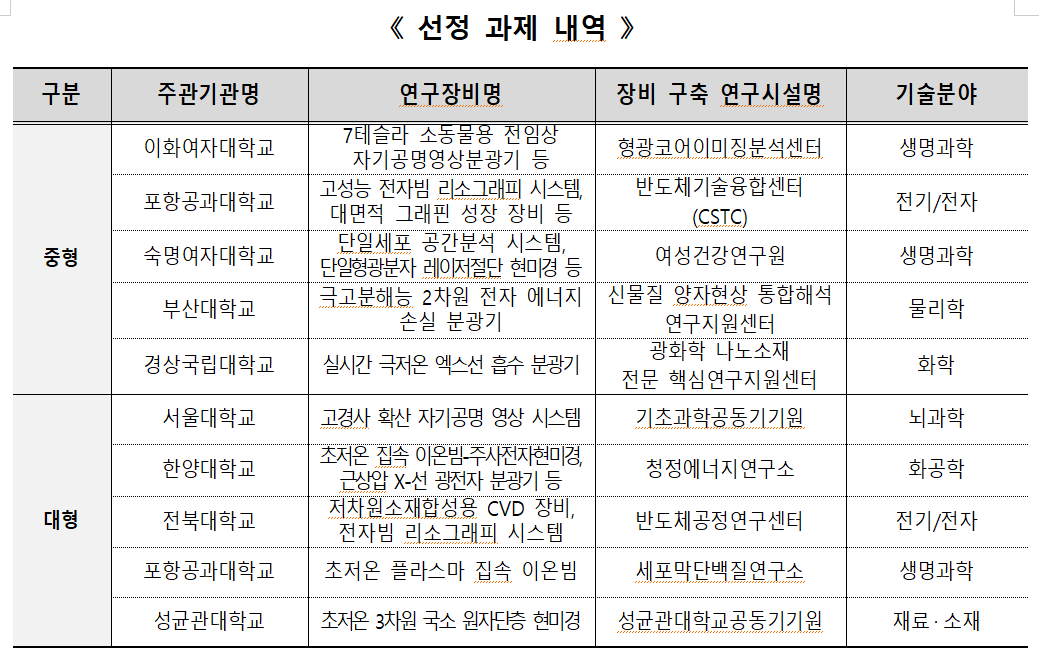 [피앤피뉴스=마성배 기자] 교육부와 한국연구재단, 국가연구시설장비진흥센터는 지난 21일 대학의 첨단 연구개발(R&D) 장비 도입 및 운영을 지원하는 ‘기반(인프라) 고도화’ 사업의 선정 결과를 발표했다.