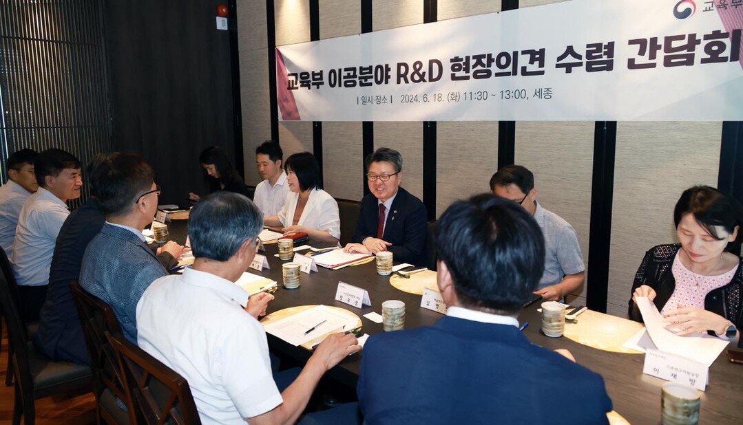 <오석환 교육부차관은 지난 6월 18일(화) ‘교육부 이공분야 연구개발(R&D) 현장의견 수렴 간담회’를 개최했다.>