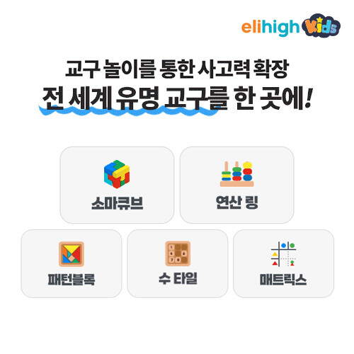 관계자는 “엘리하이 키즈의 다양한 디지털 교구 놀이는 4~7세 아이들의 수학적 사고를 확장하고, 창의력과 문제 해결력을 키우는 데 큰 도움이 될 것”이라고 말했다.