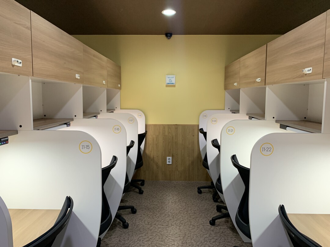 또한 수능까지 꾸준한 학습을 이어나가기 위해 의무학습 교시제와 출결‧외출 관리를 진행하며, 학습실 내에서도 졸음이나 소음 등으로 학습에 방해받지 않도록 실시간으로 학습실을 모니터링하는 상주 관리 인원의 철저한 생활관리로 오직 학습에만 집중할 수 있는 환경을 제공한다.