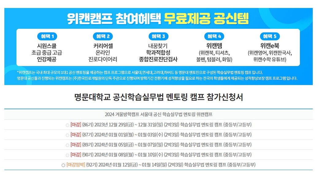 위캔캠프, 1:1 서울대 멘토링 ‘중고등 겨울방학 공신캠프’ 마감 임박…“92기만 접수 가능”