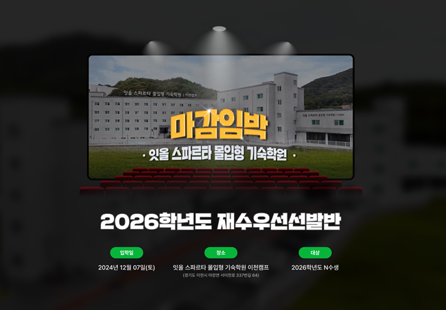 잇올 스파르타 몰입형 기숙학원 이천캠프에서는 윈터스쿨과 재수우선선발반을 모집 중이다. 기숙 윈터스쿨은 학생들의 뜨거운 관심과 함께 오픈 3주 채 지나지 않아 빠르게 마감되었고, 대기자가 속출하고 있다. 12월 6일 수능 성적 통지 이후 더 뜨거운 관심이 몰릴 것으로 예상된다.