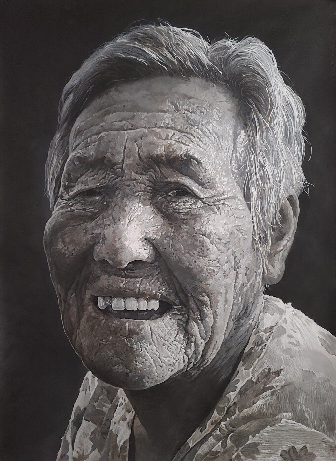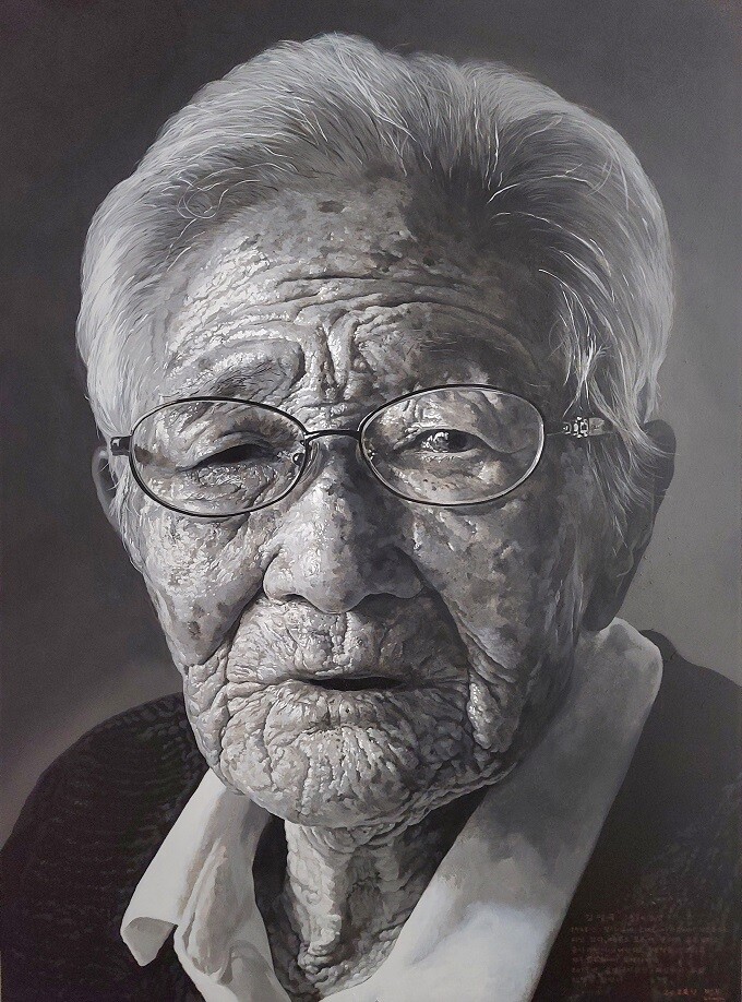 「무죄-김평국」은 제주 4.3 사건의 피해자가 겪은 이야기를 거대한 화면으로 들려주고, 「춘자 삼촌」은 웃음과 눈물이 뒤섞인 듯한 해녀 ‘춘자 삼촌’의 삶을 주름 하나하나에 담아낸다. “이야기하는 중에 계속 말씀하시면 가만히 듣고 있으면서, 손으로는 카메라 셔터를 눌러요. 그렇게 찍은 수많은 사진 컷 중에서 이분을 대표할 수 있는 표정, 그것 하나를 이제 옮기는 거죠.”라고 화가는 제작 방법을 말한다. 두 작품 모두 일반적인 초상화와는 다르다. 인물은 입을 다물지 않고 살짝 벌린 채 달싹이며 무언가를 말하고 있는 듯하다.