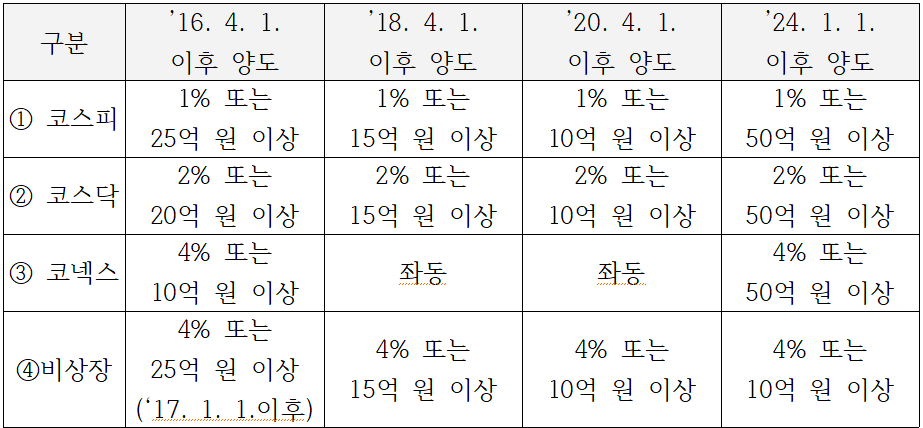 *K-OTC에서 거래되는 벤처기업의 주식 등의 경우 : 4% 이상 또는 40억 원 이상