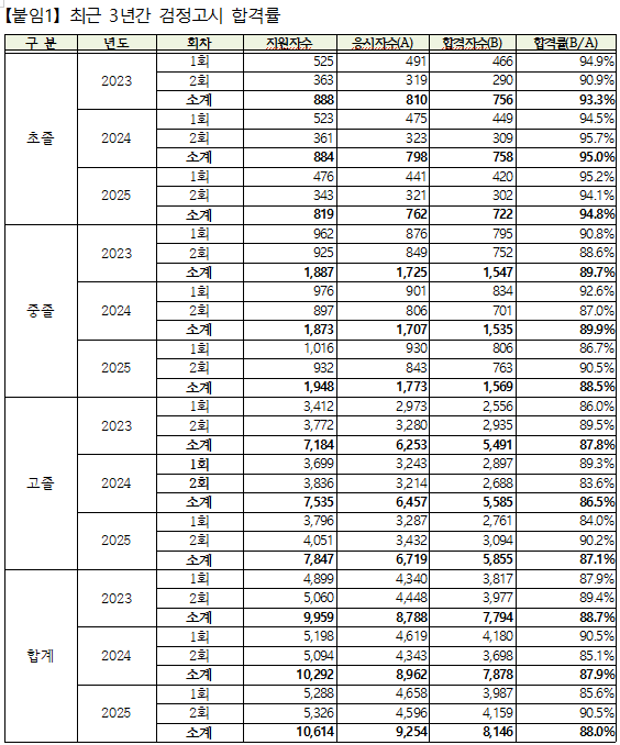 | ▲2025년도 제2회 검정고시 서울시 합격 현황(서울시교육청 제공) |