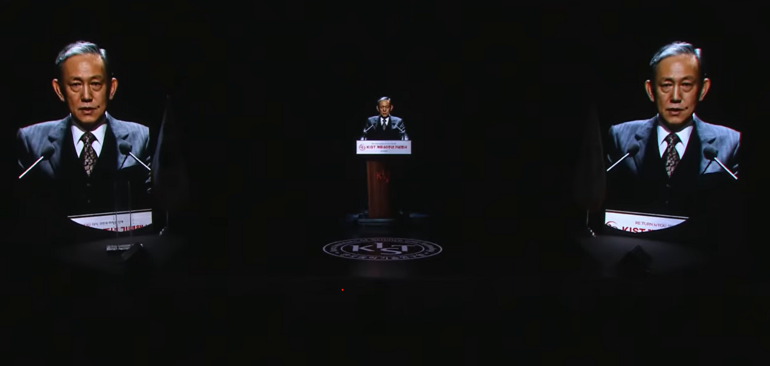 | ▲메타포앤더가 AI 기술로 복원한 최형섭 KIST 초대소장이 서울 성북구 KIST 본관 존슨강당에서 열린 ‘한국과학기술연구원(KIST) 개원 60주년 기념식’에서 축사하고 있다. 최 초대소장은 2004년에 별세했다. (사진 : KIST 공식 유튜브 60주년 기념행사 라이브) |