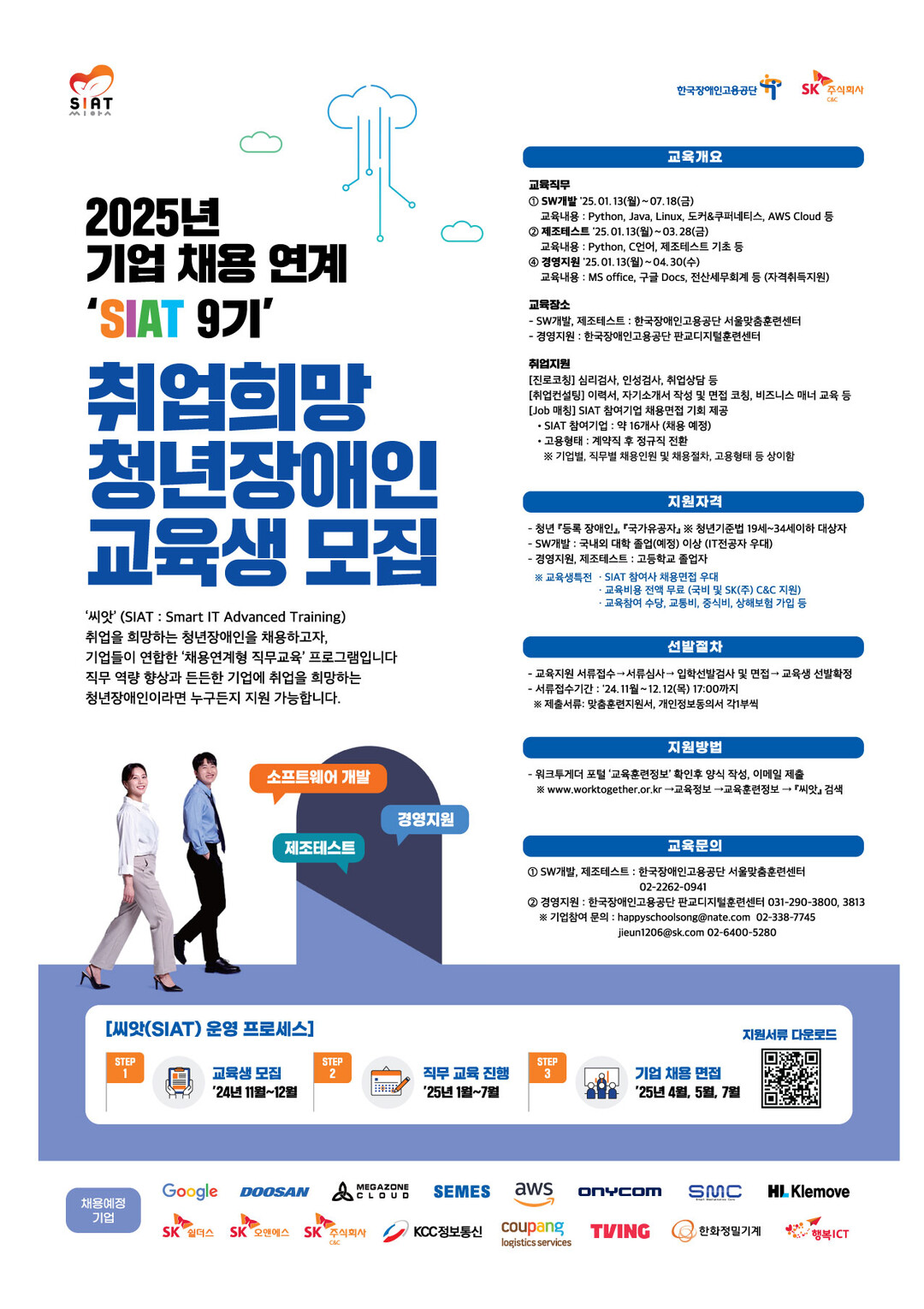 한국장애인고용공단-SK C&C, 씨앗 훈련생 모집...장애인 청년 위한 IT 전문가 육성