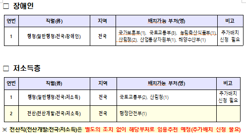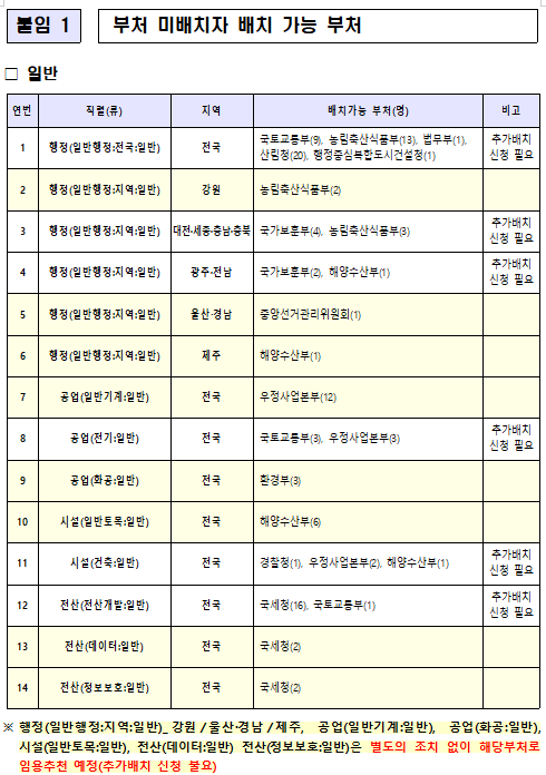 배치가능 부처가 1개인 아래 모집단위의 부처 미배치자는 별도의 조치 없이 해당부처로 임용추천 예정(추가배치 신청 불요)