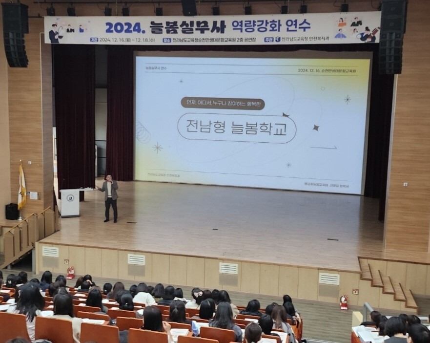 <12월 16일 순천만생태문화교육원에서 늘봄학교의 안정적 운영을 위한 ‘늘봄실무사 역량 강화 연수’가 진행되고 있다.>