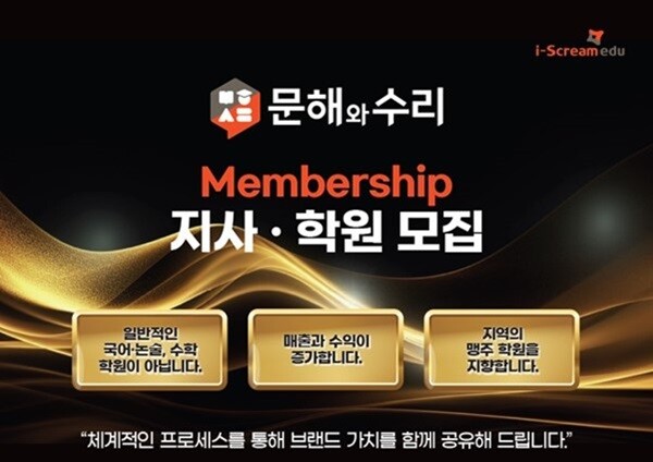 한편, 문해와수리는 오는 12일부터 23일까지 서울과 부산, 대구, 강원, 세종 등지에서 멤버십 학원 사업설명회를 진행할 예정이며, 특히 16일과 23일은 아이스크림에듀 본사에서 진행한다.