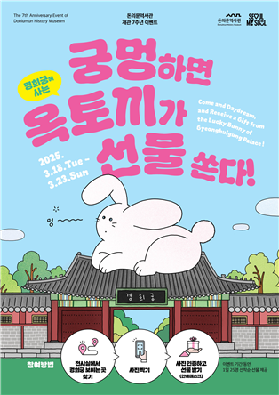 [피앤피뉴스=마성배 기자] 돈의문역사관(서울역사박물관 분관)이 개관 7주년을 맞아 3월 18일(화)부터 3월 23일(일)까지 특별 이벤트 ‘궁멍하면 옥토끼가 선물 쏜다!’를 진행한다. 이 행사는 박물관을 찾은 관람객들에게 경희궁 전망을 감상하며 여유로운 시간을 보낼 기회를 제공하는 동시에, 선착순 럭키박스 증정 이벤트로 관심을 모으고 있다.