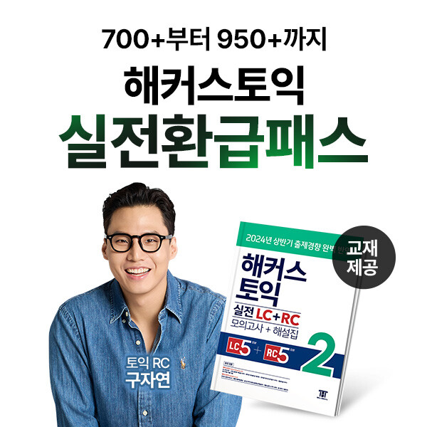 이와 함께, 2024년 최신 기출 경향을 반영한 ‘해커스 토익 실전 LC+RC 2(흰둥이2)’ 교재를 제공한다. 해당 토익 교재에는 해커스 어학연구소가 매회 토익 시험 트렌드를 분석해 시험에 나올 출제 예상 문제가 수록되어 실전 시험 대비에 유용하다.
