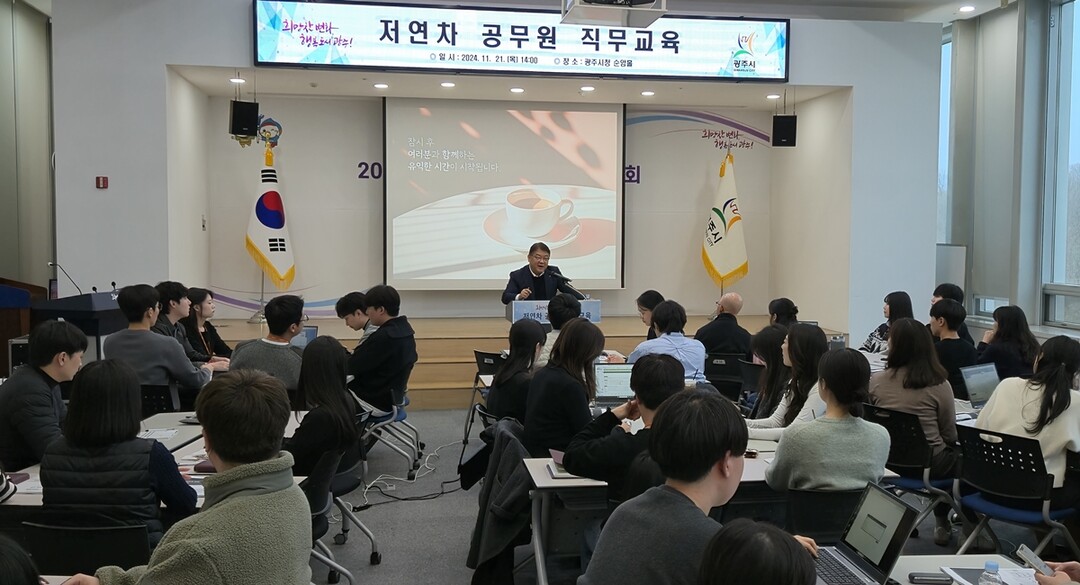 [피앤피뉴스=마성배 기자] 광주시는 신규 및 저연차 공무원들의 업무 역량 강화를 위해 지난 21일 시청 순암홀에서 60여 명을 대상으로 직무교육을 진행했다. 이번 교육은 광주시 멘티 소통간담회에서 나온 요청을 반영해 실무 중심으로 구성됐다.