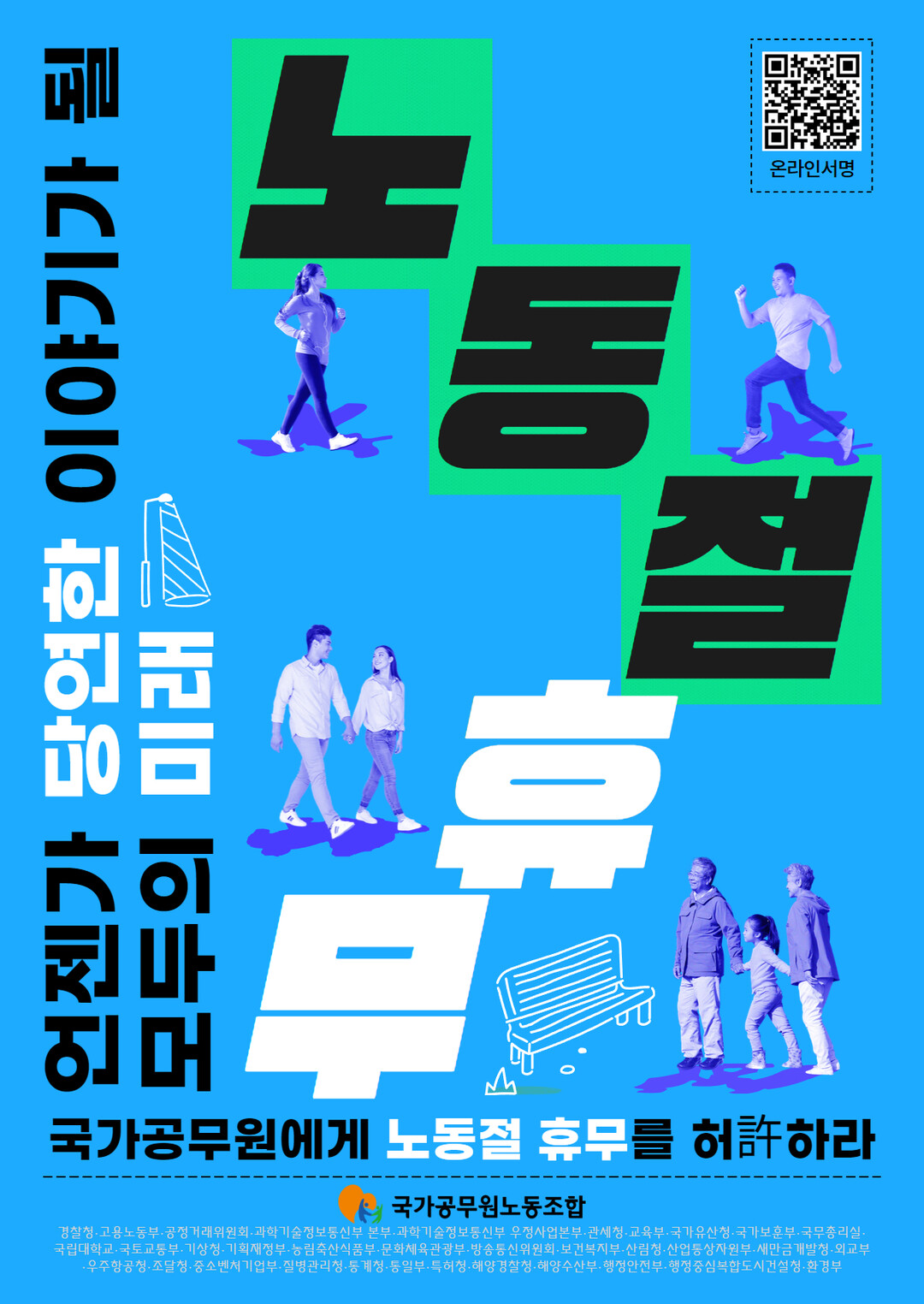 국공노는 각 정부합동청사에 노동절을 기념하는 현수막을 설치하고, 관련 부처 앞에서 1인 시위를 벌이며 ‘공무원 노동자도 노동절에 쉴 권리가 있다’는 메시지를 사회에 던지고 있다.