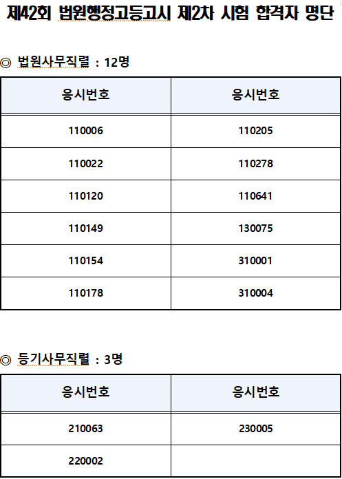 제42회 법원행정고등고시 제2차 시험 합격자 명단