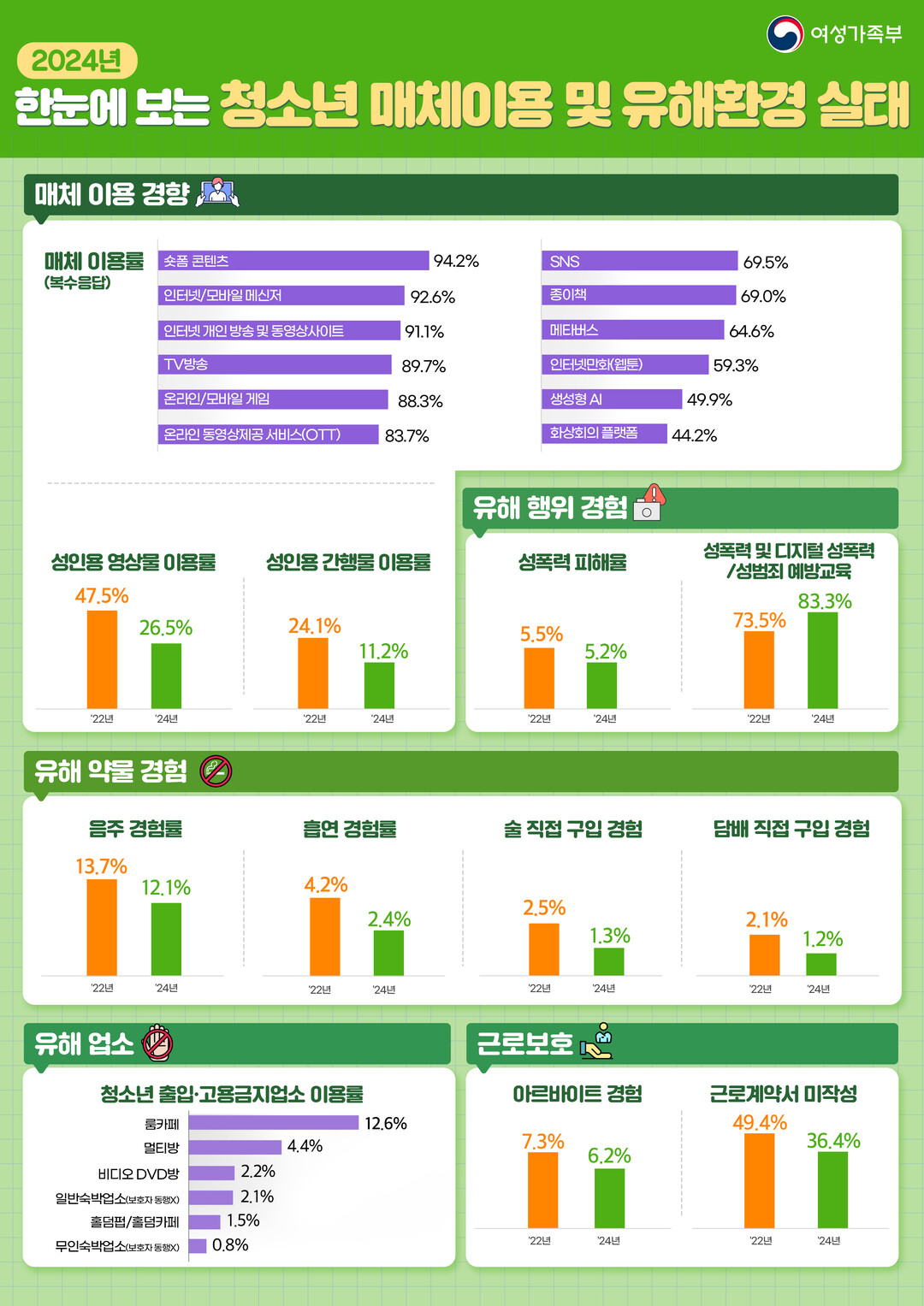 | ▲청소년 매체이용 및 유해환경 실태조사 결과_인포그래픽(여성가족부 제공) |