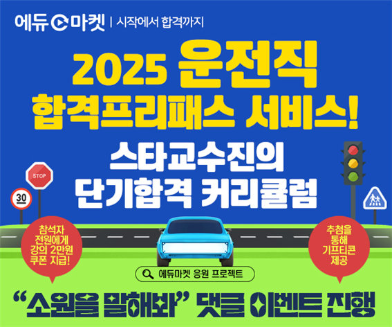 이러한 흐름에 발맞춰 에듀마켓은 2025 운전직 공무원 시험 대비 ‘운전직 합격 프리패스’ 서비스를 선보였다. 이번 프리패스는 도로교통법규의 김진아 교수, 자동차구조원리의 이윤승 교수, 사회 과목의 김현철 교수 등 각 분야에서 인정받는 스타 강사들의 강의를 제공한다.