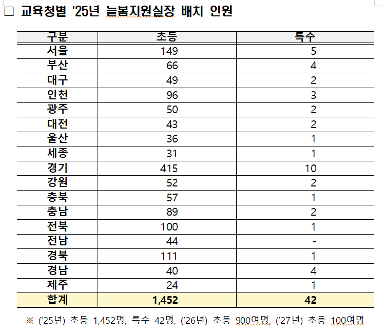 7월부터는 늘봄실무인력이 추가 배치되어 현재 9,104명의 전담 인력이 2학기를 준비 중이며, 학교별로 다양한 유형의 보조 인력도 배치되었다.