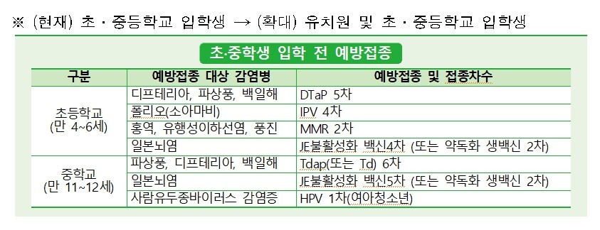 국가필수예방접종 이력관리 대상, 유치원 입학생까지 확대