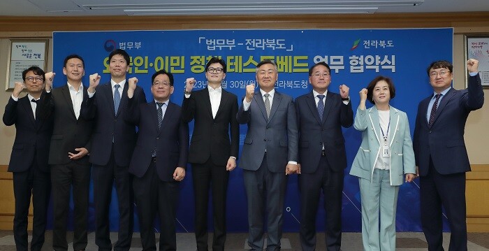 법무부와 전라북도는 중앙정부와 지방자치단체 간 외국인·이민정책의 경험과 정보를 공유하고, 상호 유기적인 협력체계를 구축하기 위해 지난 30일 업무협약(MOU)을 체결했다고 밝혔다.