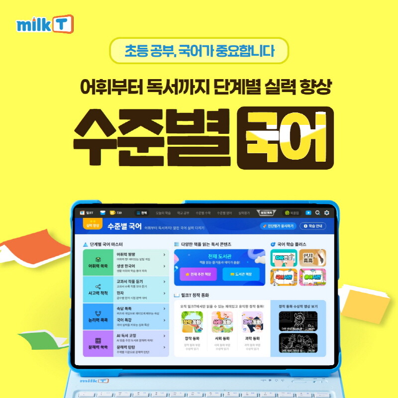 밀크티초등의 ‘수준별 국어’에는 초등학생의 어휘력과 사고력, 논리력, 문해력을 단계별로 향상할 수 있는 콘텐츠가 가득하다.
