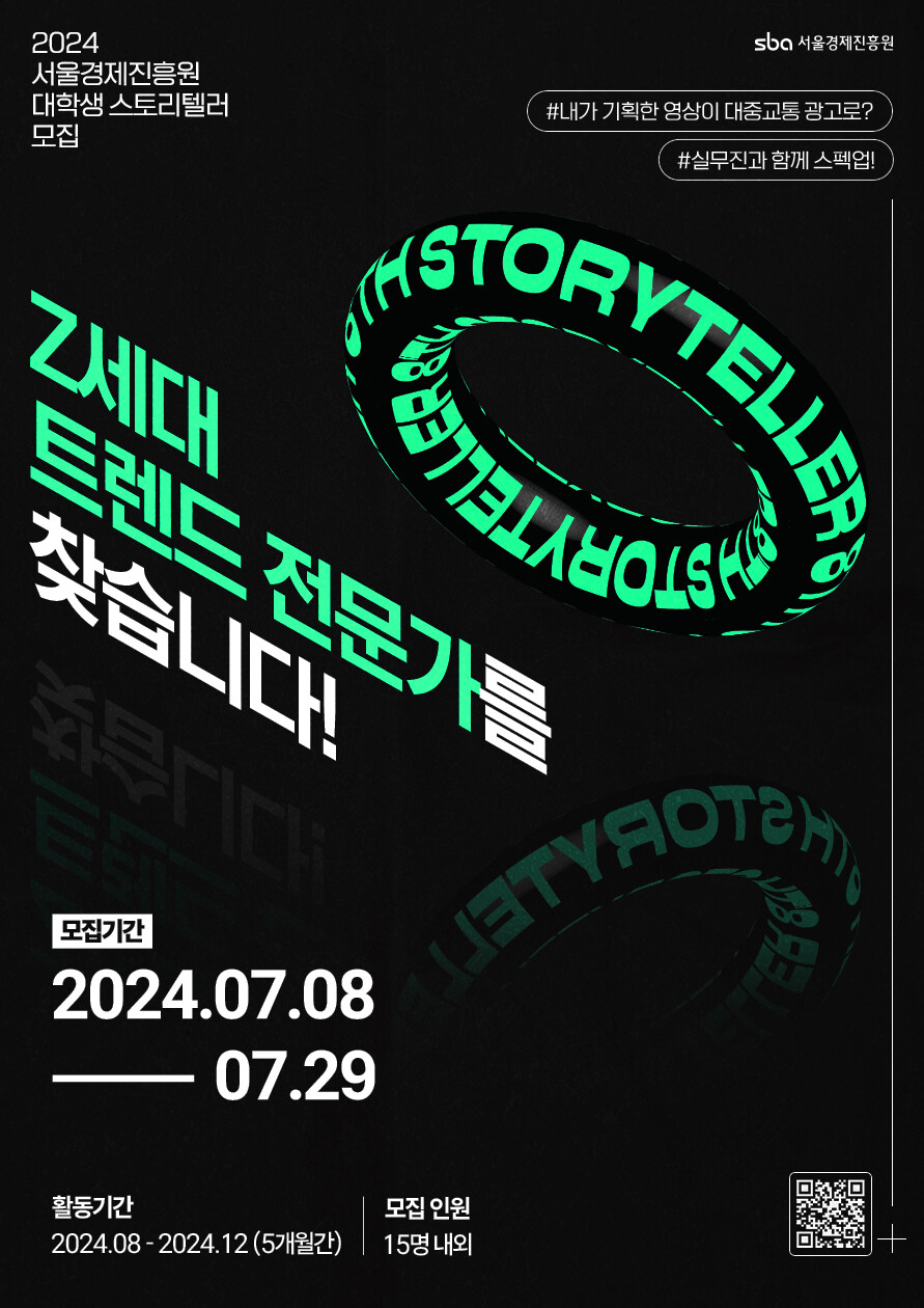 [피앤피뉴스=마성배 기자] 서울시의 중소기업 지원기관인 서울경제진흥원은 8일 대학생 콘텐츠 크리에이터 그룹 ‘스토리텔러 8기’를 오는 29일까지 모집한다고 밝혔다.