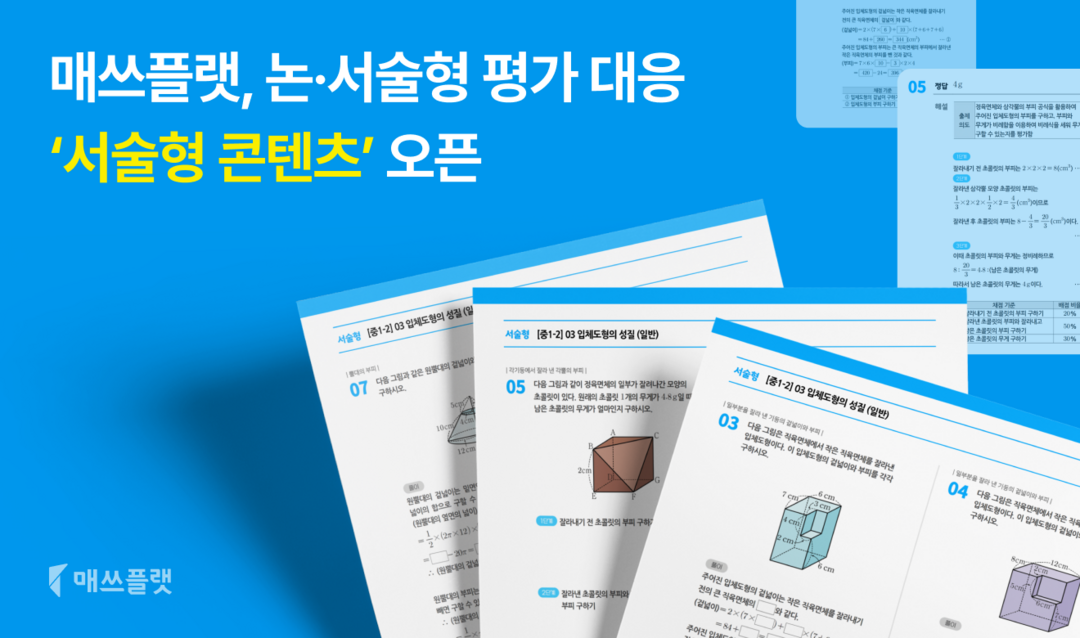 | ▲사진: 매쓰플랫, 논서술형 평가 대응 ‘서술형 콘텐츠’ 오픈 |
