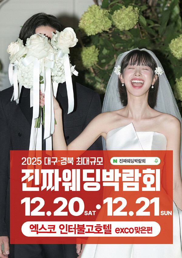 대구·경북 지역 예비부부를 대상으로 한 웨딩 종합 박람회 ‘진짜웨딩박람회’가 오는 12월 20일(토)부터 21일(일)까지 이틀간 엑스코인터불고호텔에서 열린다. 사전 신청자에 한해 입장료는 무료로 제공된다.