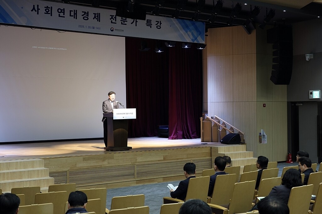 행정안전부는 26일 정부세종청사 중앙동 민원동 대강당에서 전 직원을 대상으로 ‘사회연대경제 전문가 특강’을 개최했다고 밝혔다. 지난해 10월 사회연대경제 정책 주무부처로 지정된 이후 마련된 첫 전사적 교육으로, 중앙정부 차원에서 전 직원을 대상으로 관련 교육을 실시한 것은 이번이 처음이다.
