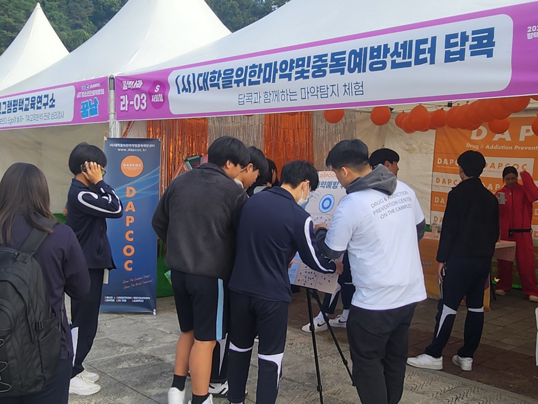 이번 행사는 EBS와 평택시가 공동 주최한 청소년 진로박람회로, 약 600여 명의 청소년이 참여했다. DAPCOC(답콕)은 대학생 자원활동가들이 직접 기획하고 운영한 ‘참여형·놀이형 마약예방 프로그램’을 선보여 현장 참가자들로부터 뜨거운 호응을 얻었다.