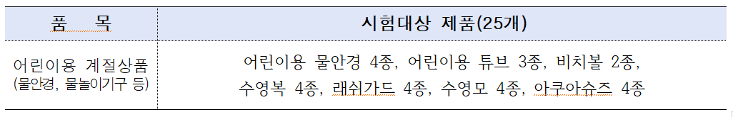 시는 8월 첫째 주 해외 온라인 플랫폼에서 판매 중인 어린이용 튜브, 비치볼, 물안경, 수영복 등 25개 제품을 대상으로 실시한 안전성 검사 결과, 7개 제품에서 국내 기준치를 초과하는 유해 물질이 검출됐다고 1일 밝혔다.