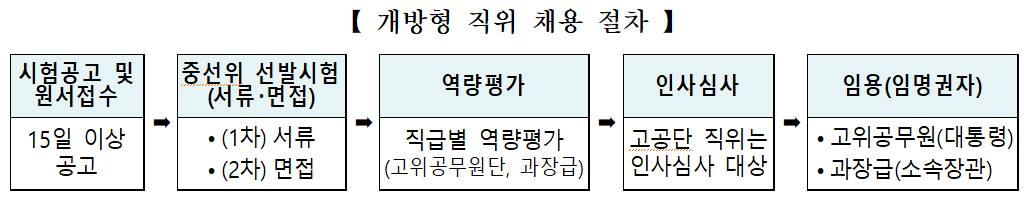 개방형 직위 공고 및 서류접수는 19일까지 진행하고, 자세한 사항은 나라일터와 각 부처 누리집 모집공고에서 확인할 수 있다.