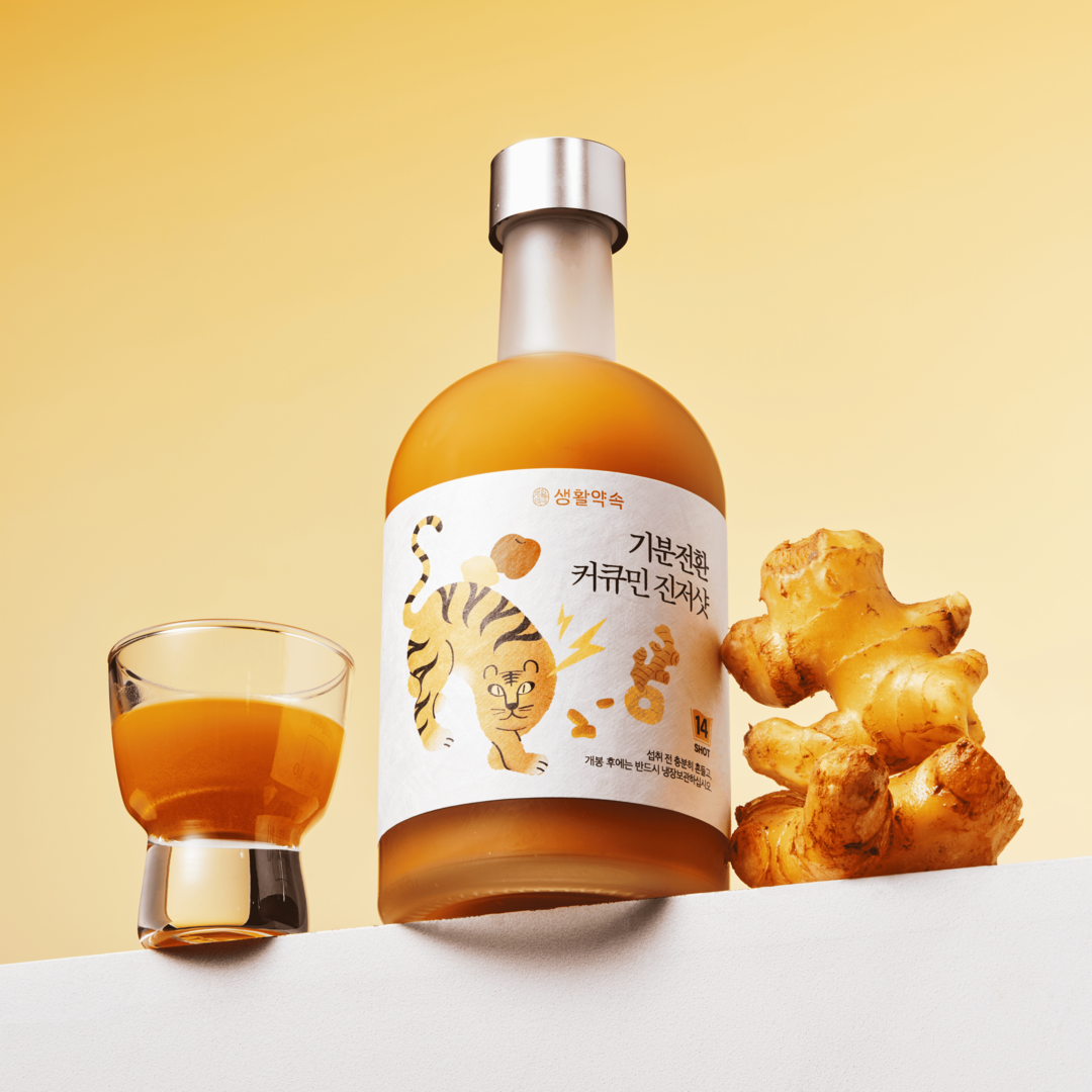 기분전환 커큐민 진저샷은 하루 한 잔으로 활력과 면역을 동시에 채워줄 수 제품이다. 단기적 변화가 아닌, 지속적인 데일리 관리 루틴을 도와주는 데 초점을 맞췄다. 자연이 선물한 난로라 불리는 네덜란드산 유기농 생강 착즙액 6,440mg을 함유하였으며, 생강의 핵심성분인 쇼가올, 진저롤이 몸을 따뜻하게 데워주는데 도움을 주어, 면역력 증가 및 피로 회복에도 긍정적인 영향을 준다고 알려져 있다.