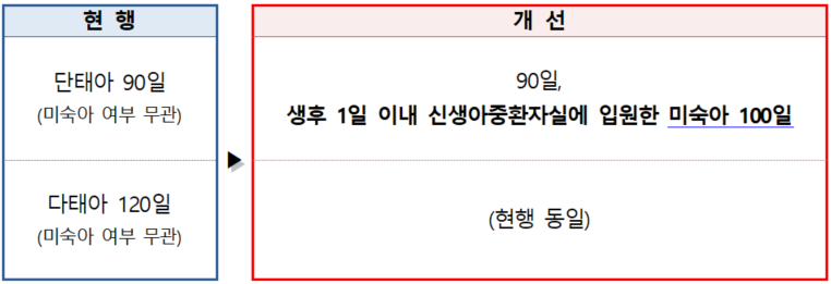 이번 개정안에는 미숙아 출산 시 공무원의 출산휴가를 100일까지 확대하는 내용도 포함됐다. 기존에는 출산휴가가 90일로 제한되었으나, 자녀가 신생아중환자실(NICU)에 입원한 경우 10일을 추가로 사용할 수 있도록 변경됐다.