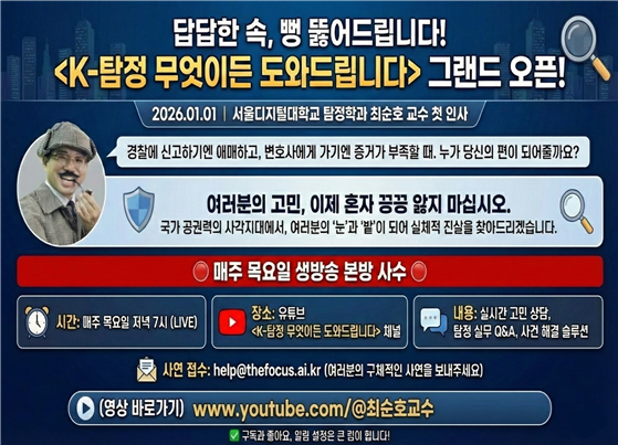 서울디지털대 최순호 교수, “K-탐정 무엇이든 도와드립니다” 유튜브 라이브 개시
