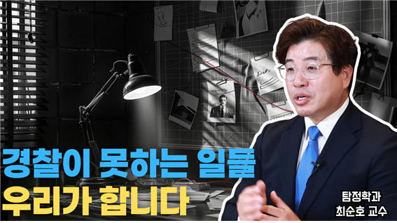 ▲"경찰이 못하는 일, 우리가 합니다"라는 슬로건을 내건 유튜브 채널 ‘K-탐정 무엇이든 도와드립니다’ 공식 썸네일. 최순호 교수가 탐정의 공익적 역할을 강조하고 있다.[사진제공=서울디지털대학교]
